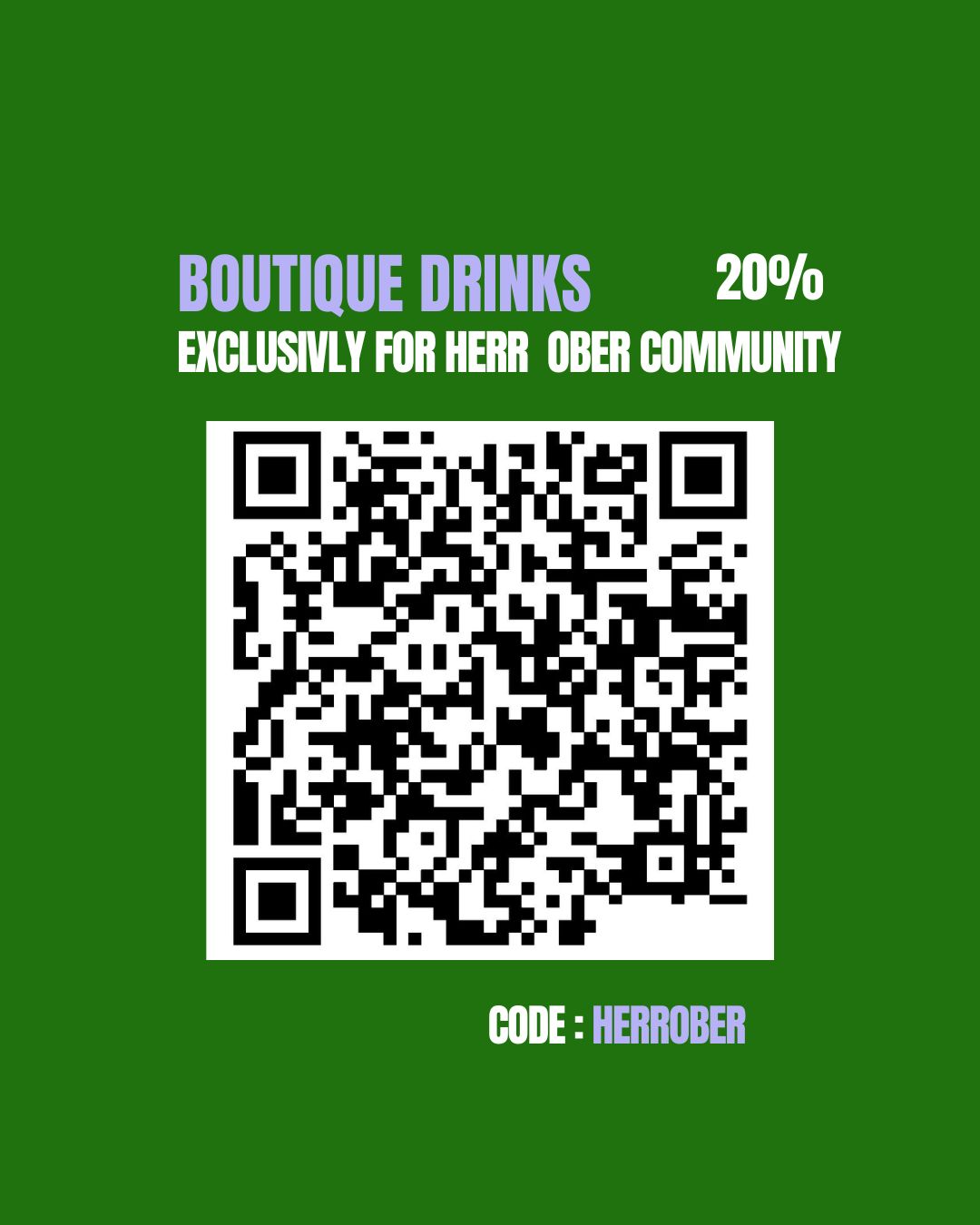 As a gesture, we’re offering a special Boutique Drinks offer OF 20% via the QR code below or on BOUTIQUE DRINKS website with the CODE: HERROBER